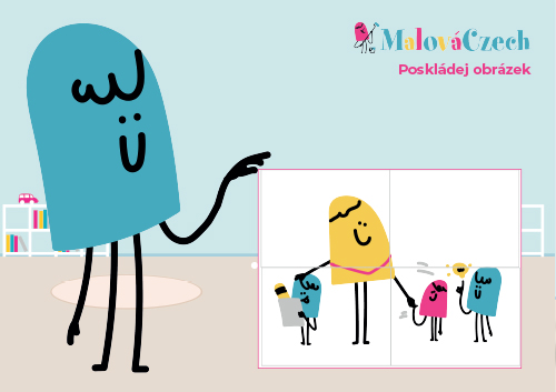 MalíCzech potřebuje poskládat obrázek. PDF je rozděleno na tři stránky. První stranu zalaminovat, polepit suchým zipem. Druhou stranu vystříhat, poté jednotlivé části zalaminovat a z druhé strany polepit suchým zipem. Třetí část vytisknout a zalaminovat. Tyto části se poskládají v obrázek.